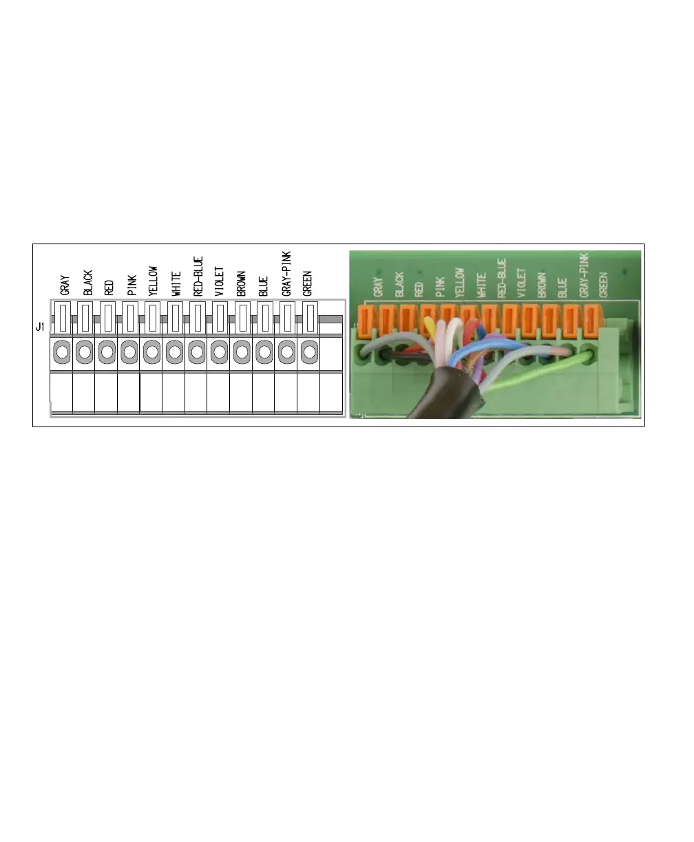 The Matrox camera connector (J1) is a series of 12 wire-terminals. Connect it to