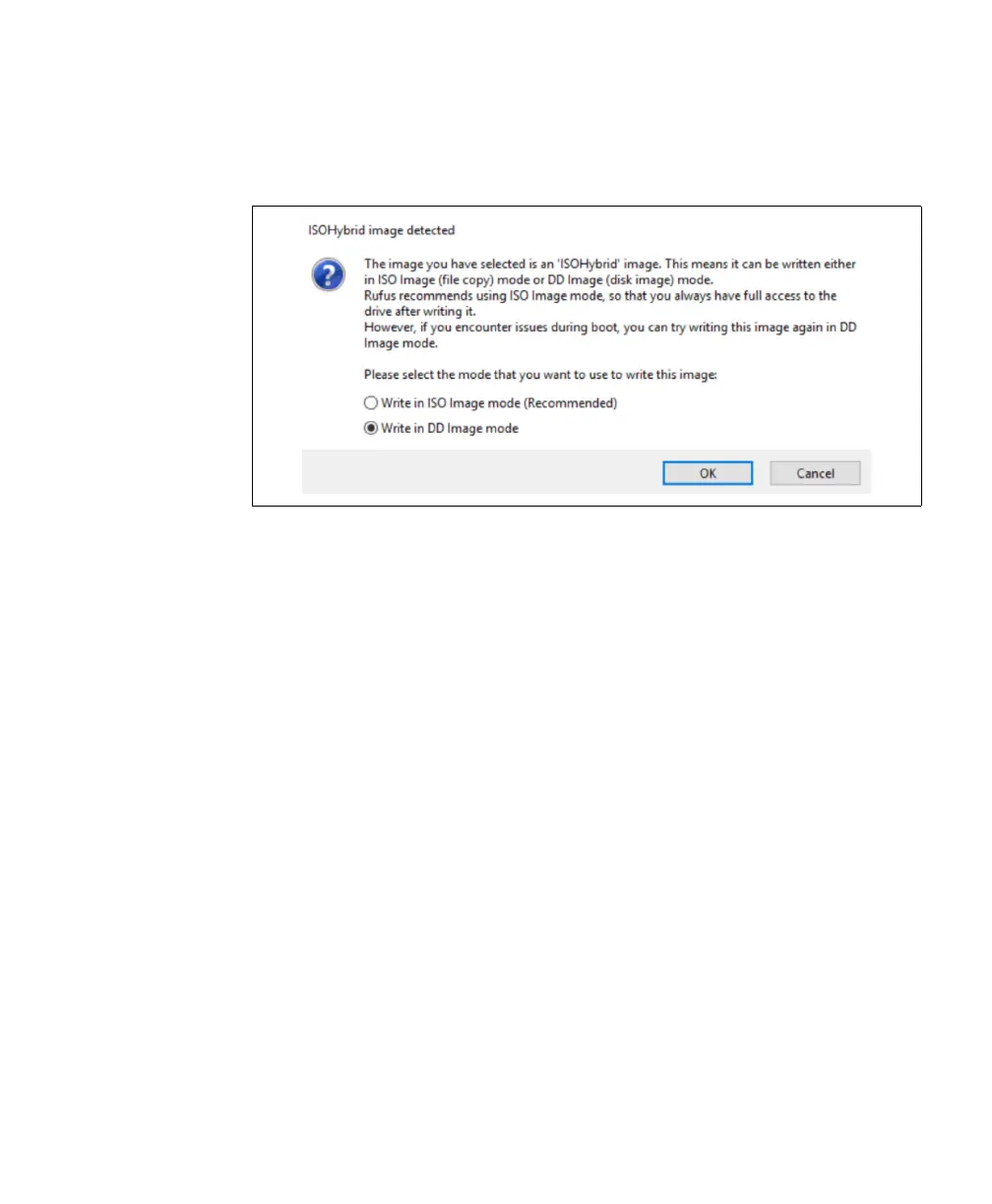 9. Another pop-up will appear asking you in which mode to write your ISO image.