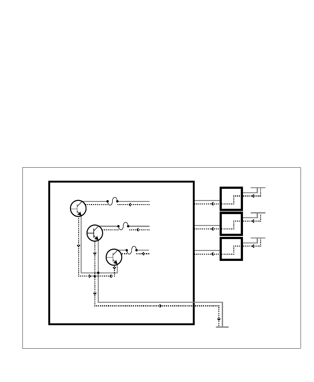 is connected to their dedicated pin and the return path is connected to the