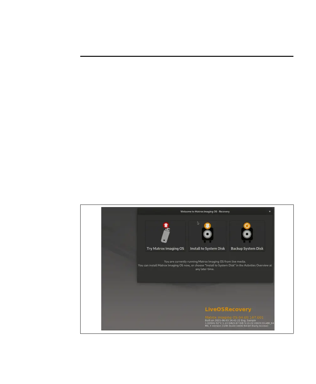 2. On the Matrox Imaging OS - Recovery page, select Backup System Disk.