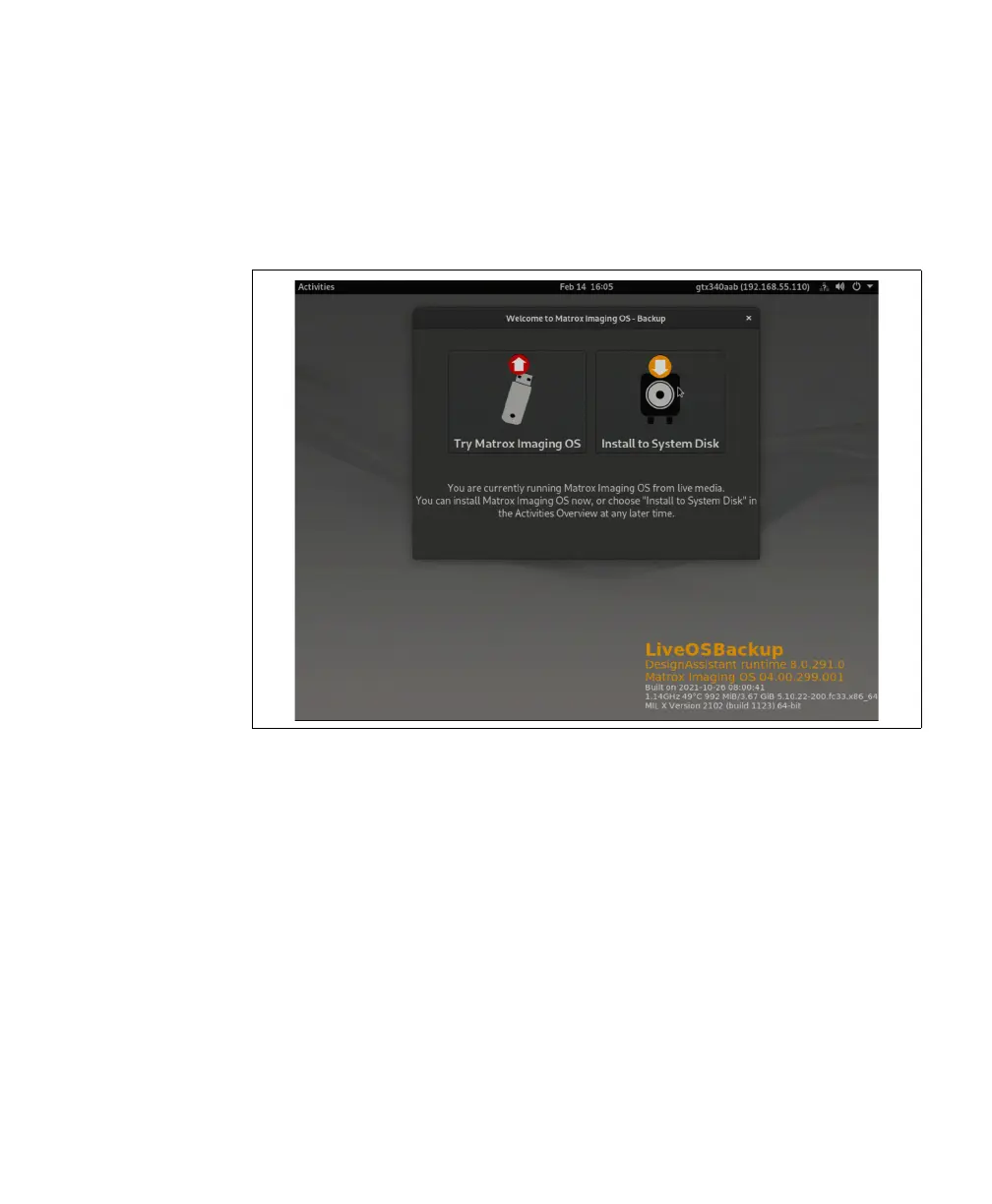 screen, ask for the default password, and then present the Matrox Imaging OS -