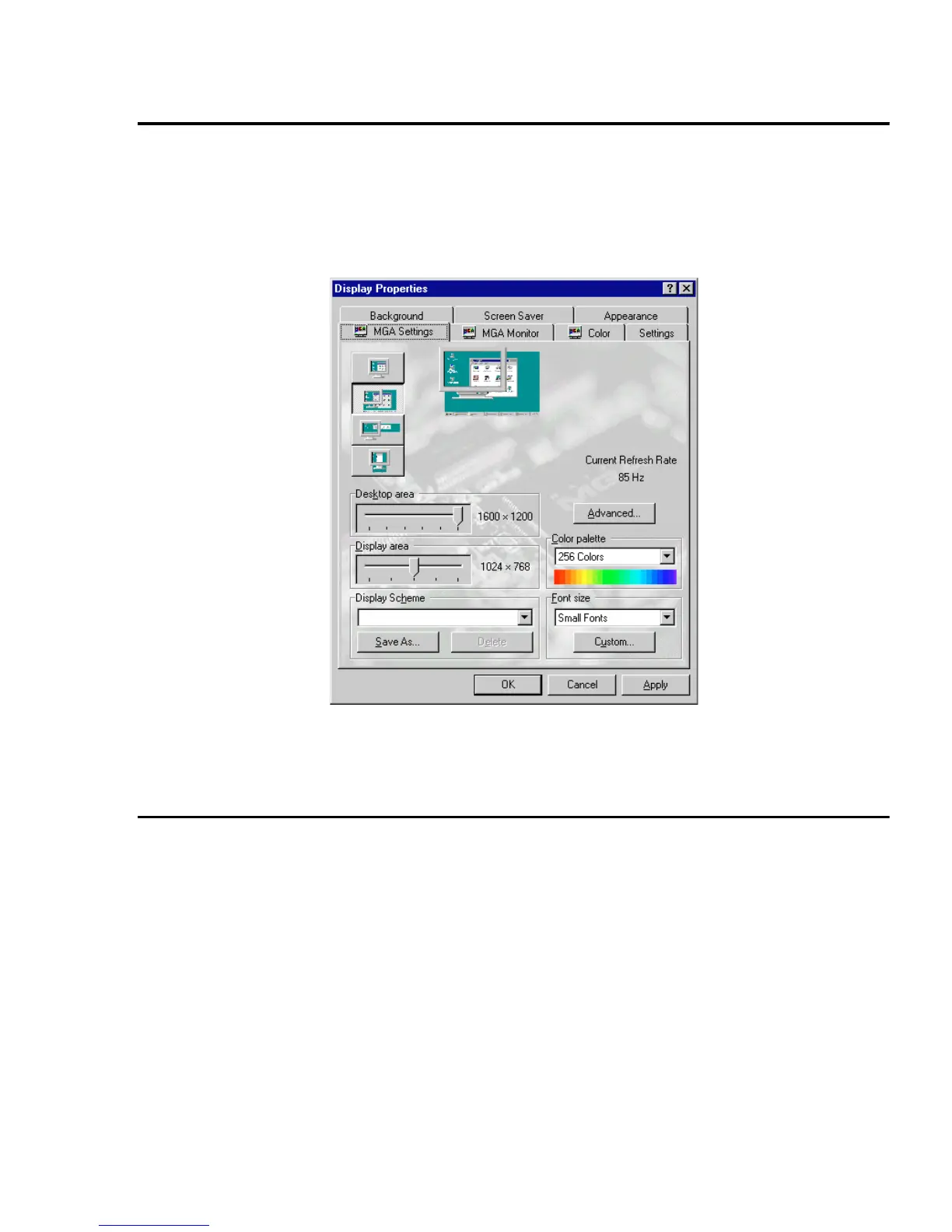 resolution, color palette and other MGA PowerDesk settings through the Windows 95
