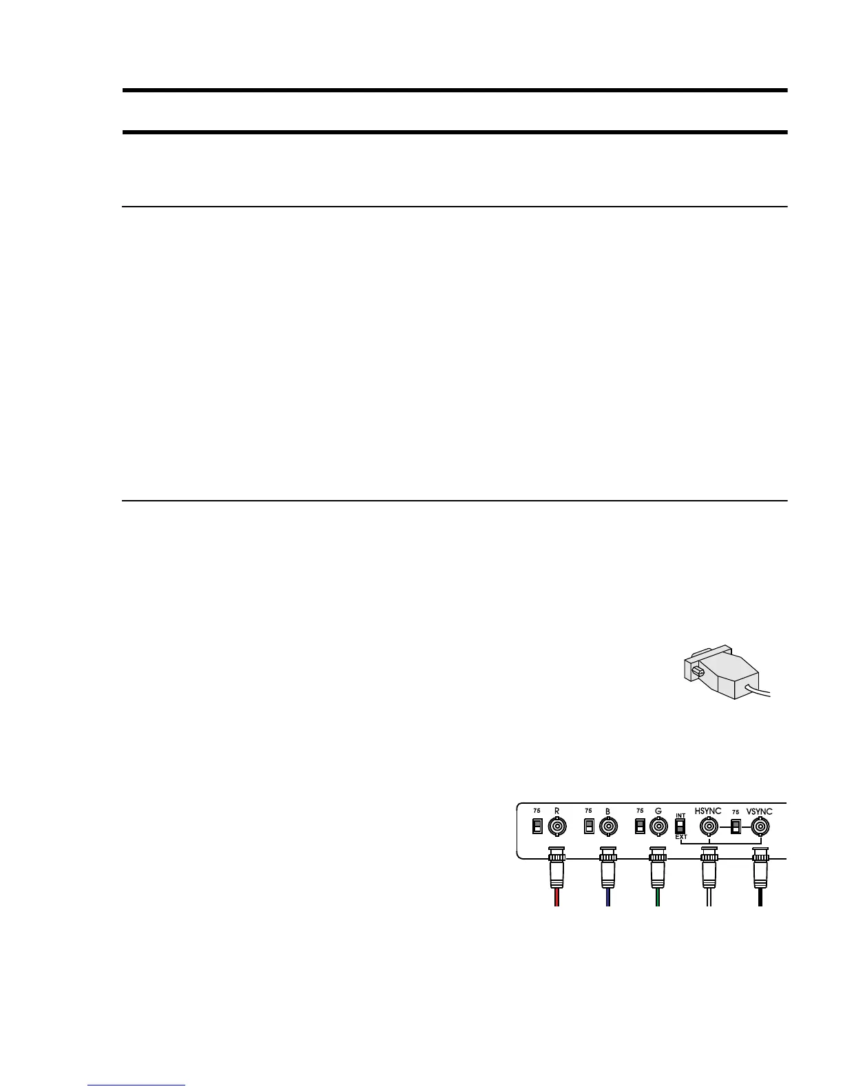 Solution – If your monitor uses BNC input (see picture below), make sure the Red, Green,