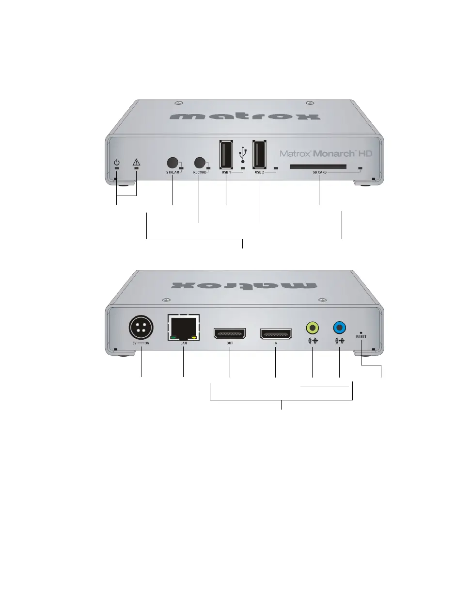 This section explains the Matrox Monarch HD hardware components. For