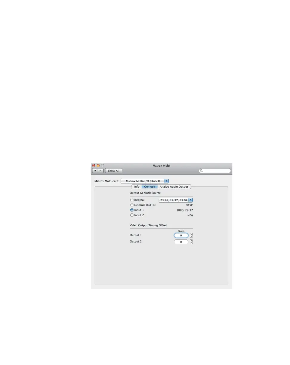 ¡ Important The selected genlock source applies to all Matrox Multi outputs. To