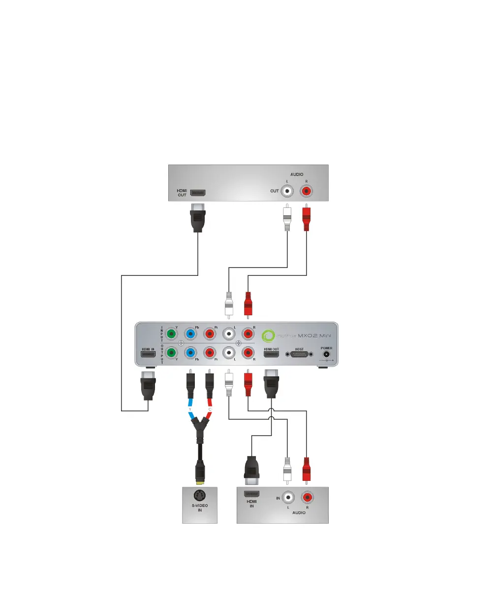 In this illustration, we’re using HDMI for video, RCA connectors for audio, and