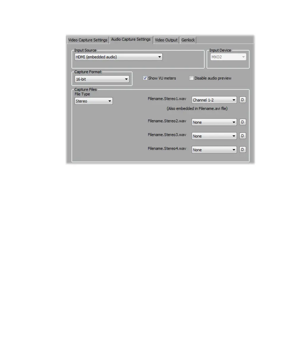 ¦NoteWhen capturing HDMI embedded audio, only uncompressed