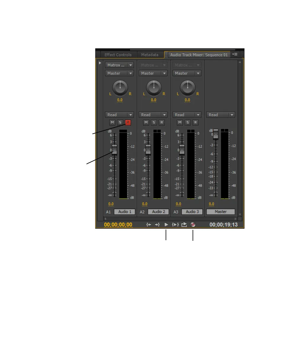 3 In the mixer’s panel, click the Enable track for recording button (R) for