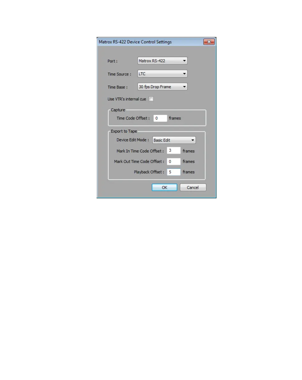 4 From the Port list, select Matrox RS-422 if you’ve connected your device