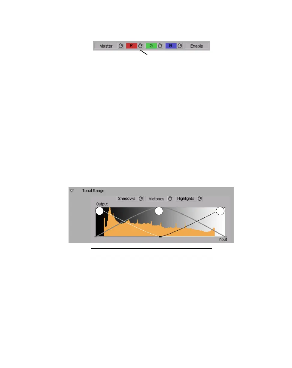 If you want to reset the Master, R, G, or B curve to its default setting at any time,