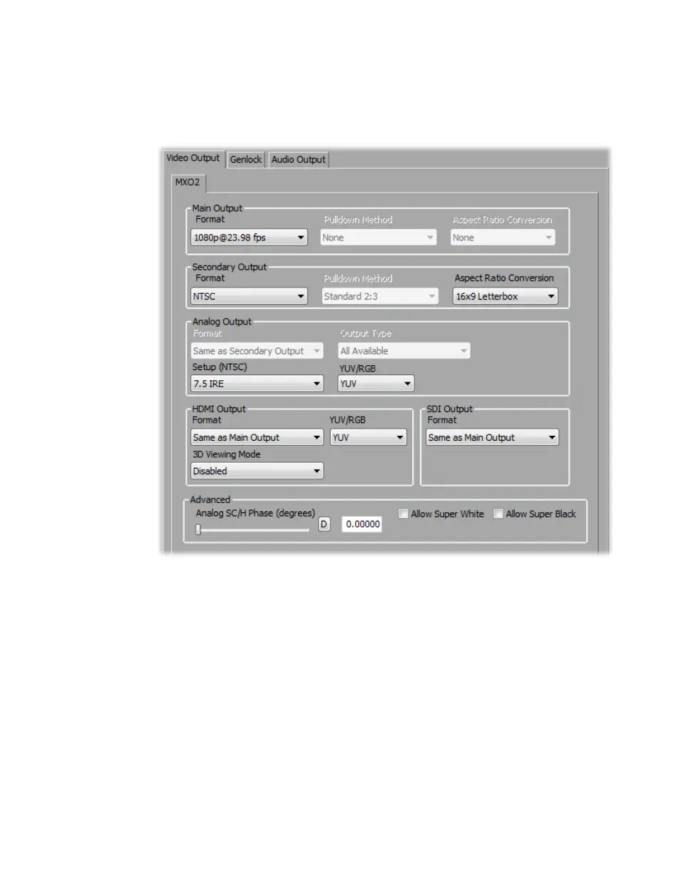 2 In the Matrox Playback Settings dialog box, click the Video Output tab.