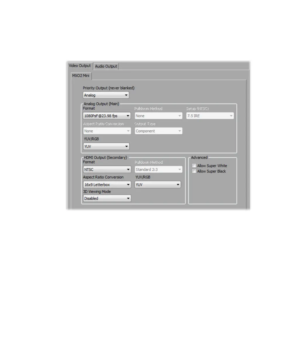 2 In the Matrox Playback Settings dialog box, click the Video Output tab.