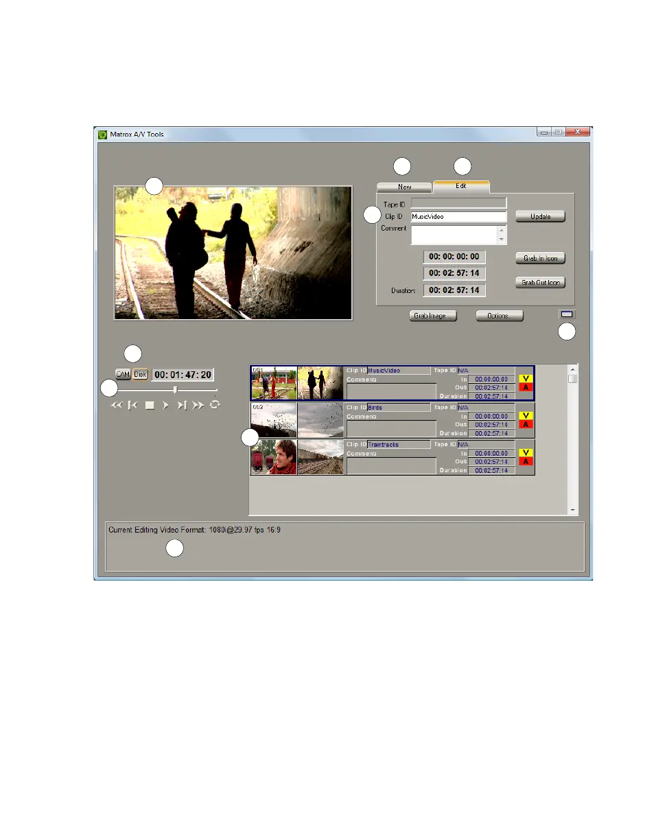 1 Edit tab Use this tab to edit clips, and update clip information. For details,