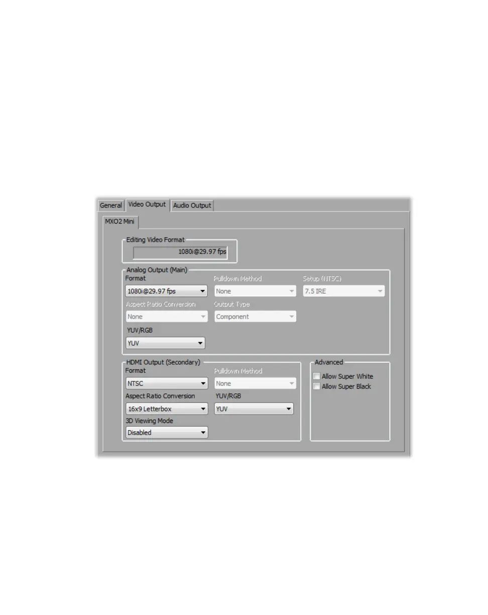 Specifying your video output settings (MXO2 Mini)