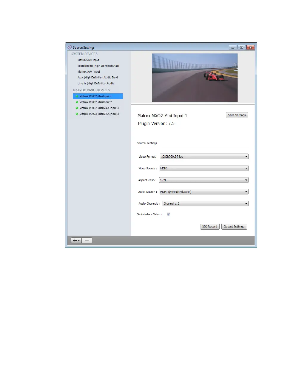 5 In the Source Settings dialog box, under MATROX INPUT DEVICES,