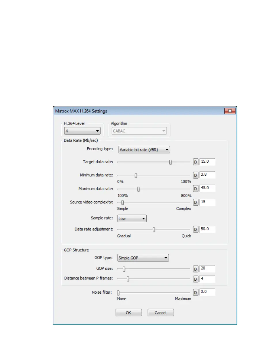 When creating Matrox MAX H.264 files (Matrox .264 or .mp4 files), appropriate