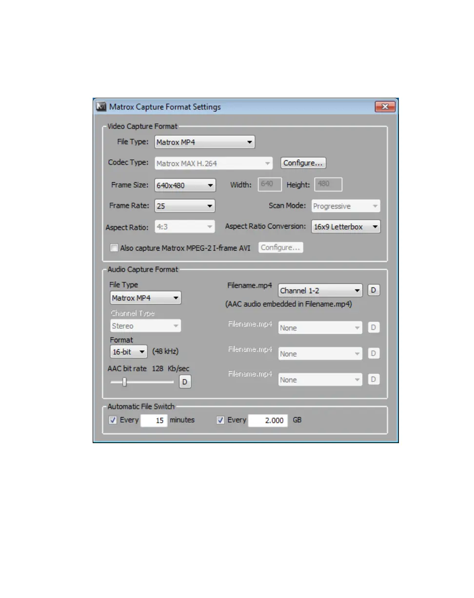 • Matrox 264 (Blu-ray) Creates a .264 elementary stream file, which