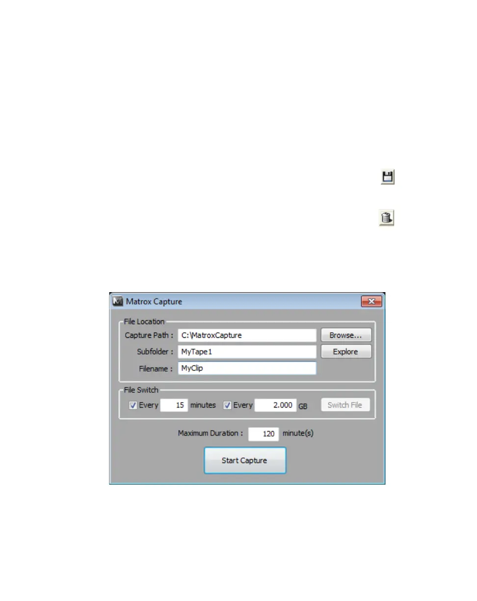 ¦NoteIf you select both automatic file switch options, the capture will switch