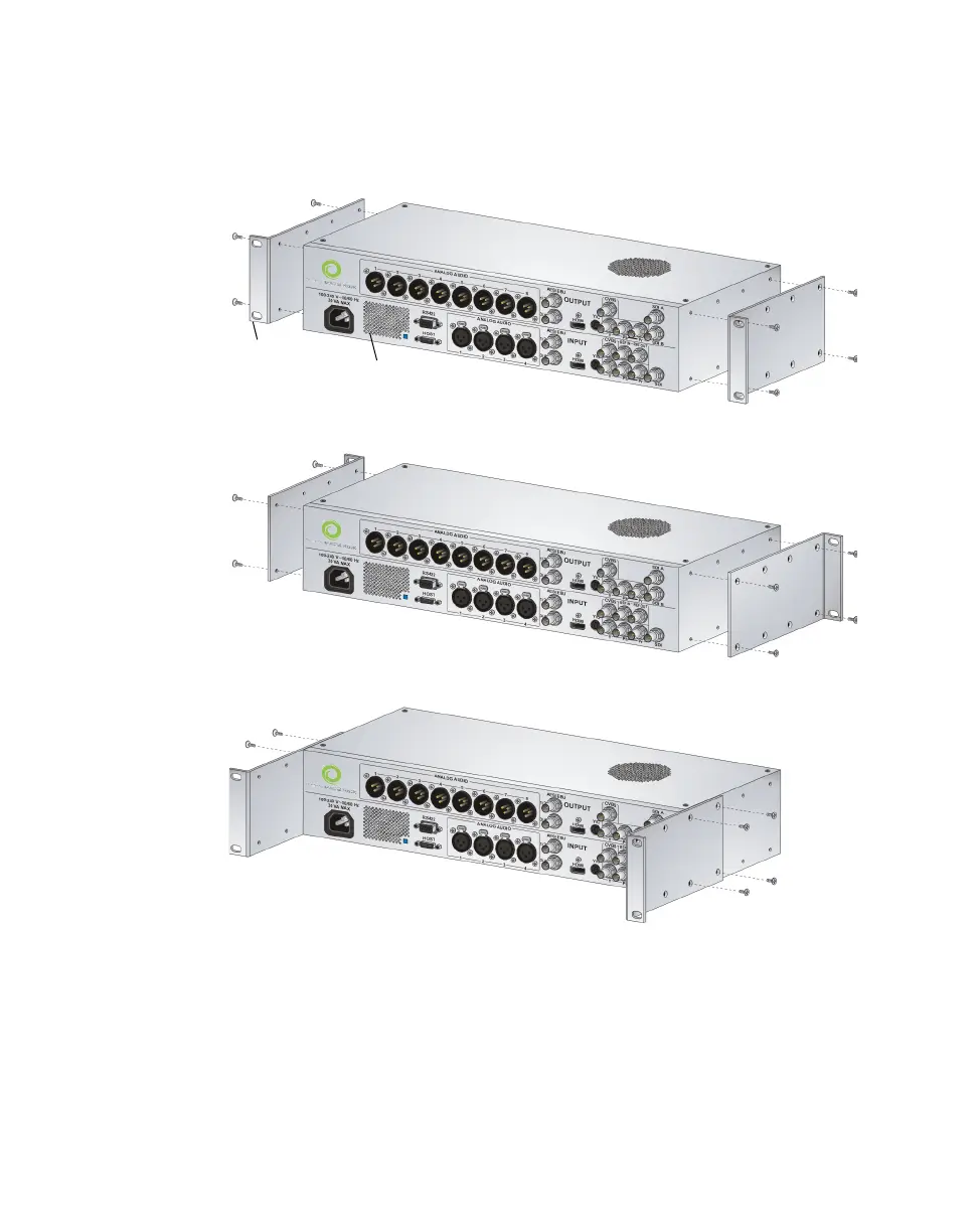 make sure to fasten each rackmount bracket to MXO2 Rack using all four
