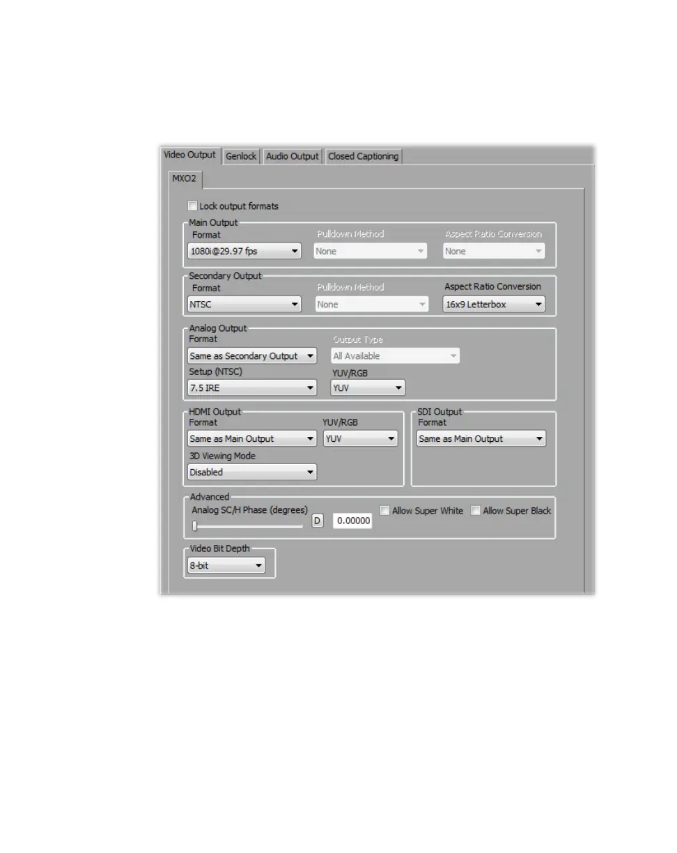 1 In the Matrox Playback Settings dialog box, click the Video Output tab.