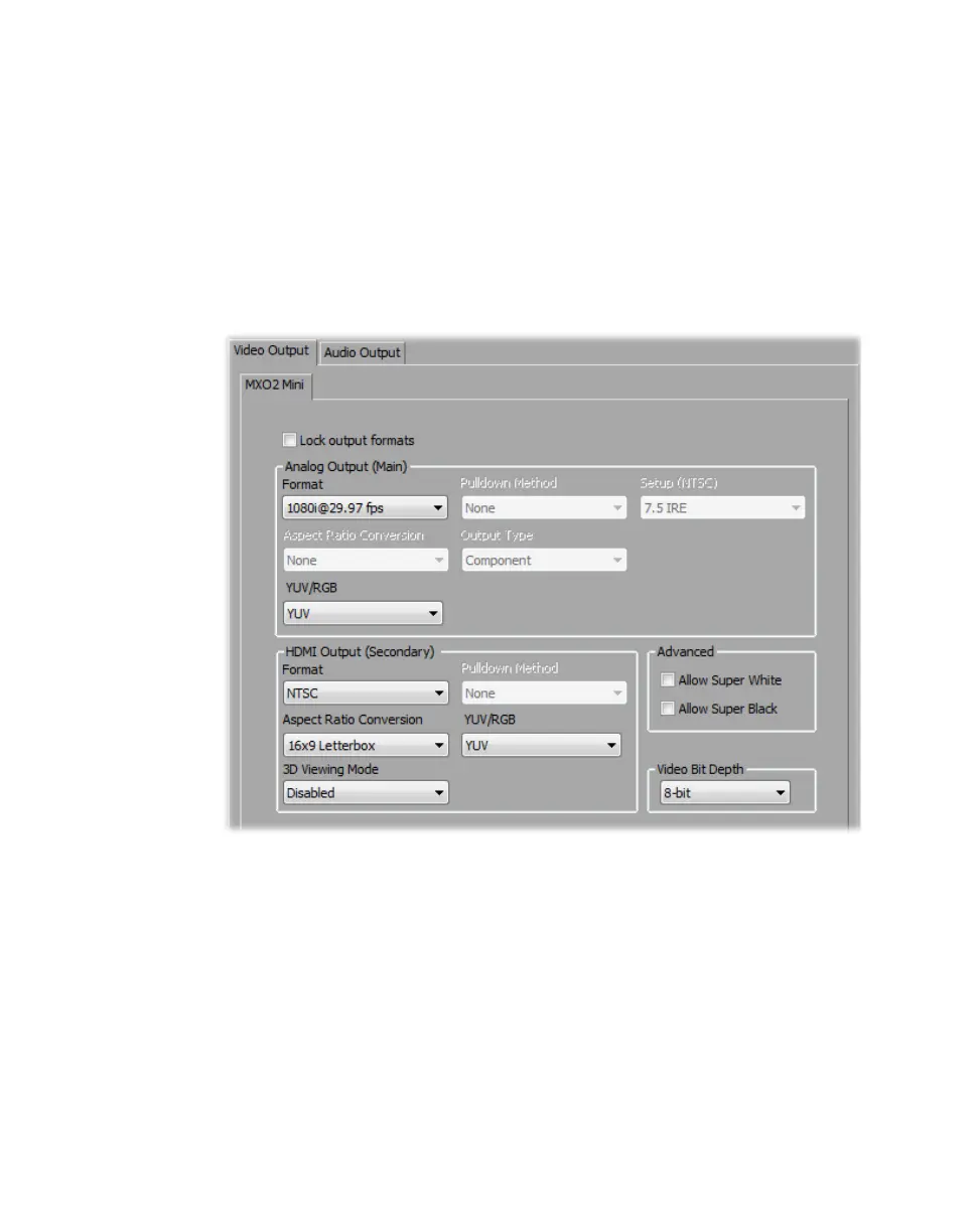 1 In the Matrox Playback Settings dialog box, click the Video Output tab.