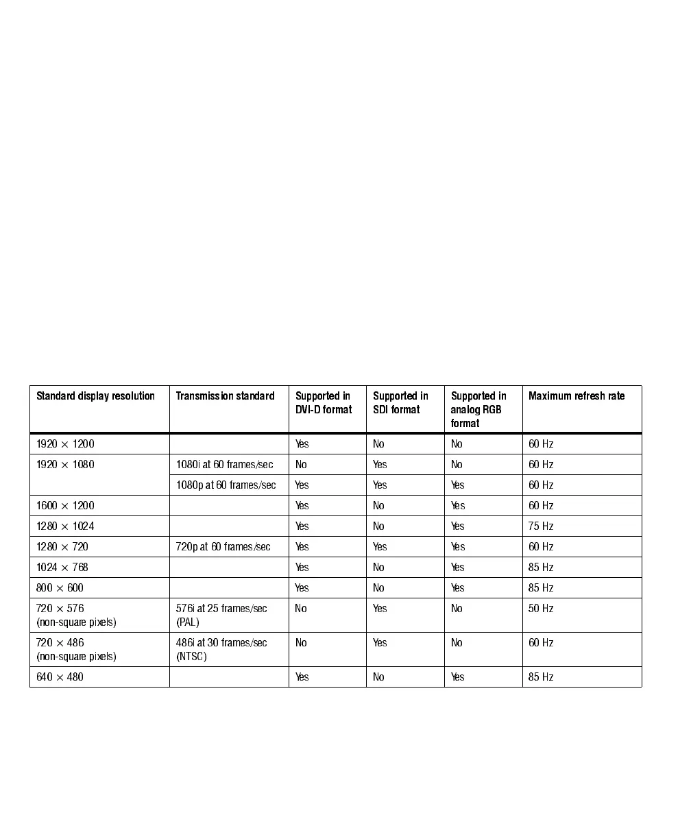 (DVI-D or SDI) or analog output devices, depending on the connector to which
