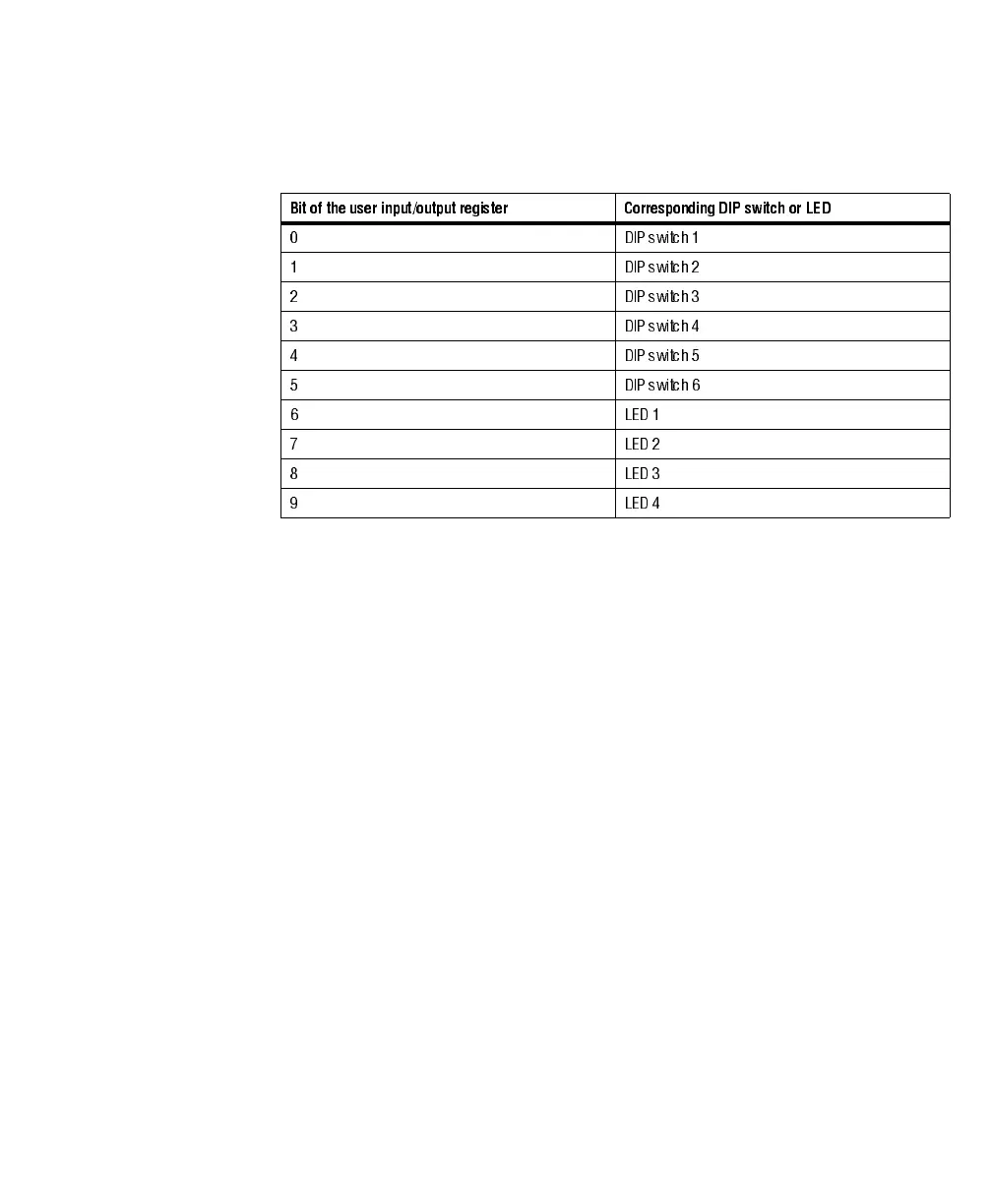 Bit of the user input/output register Corresponding DIP switch or LED
