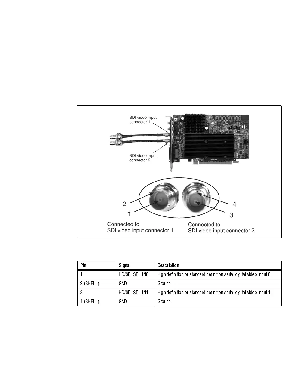 connectors, used to receive HD/SD 3G-SDI video signals. Each connector can