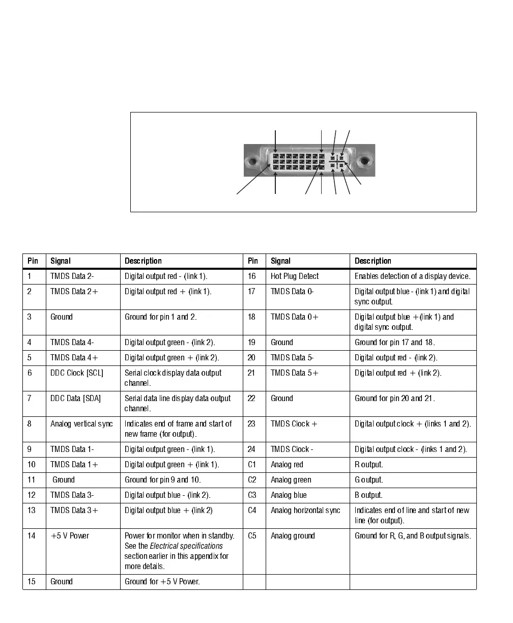 5 TMDS Data 4+ Digital output green + (link 2). 20 TMDS Data 5- Digital output red - (link 2).