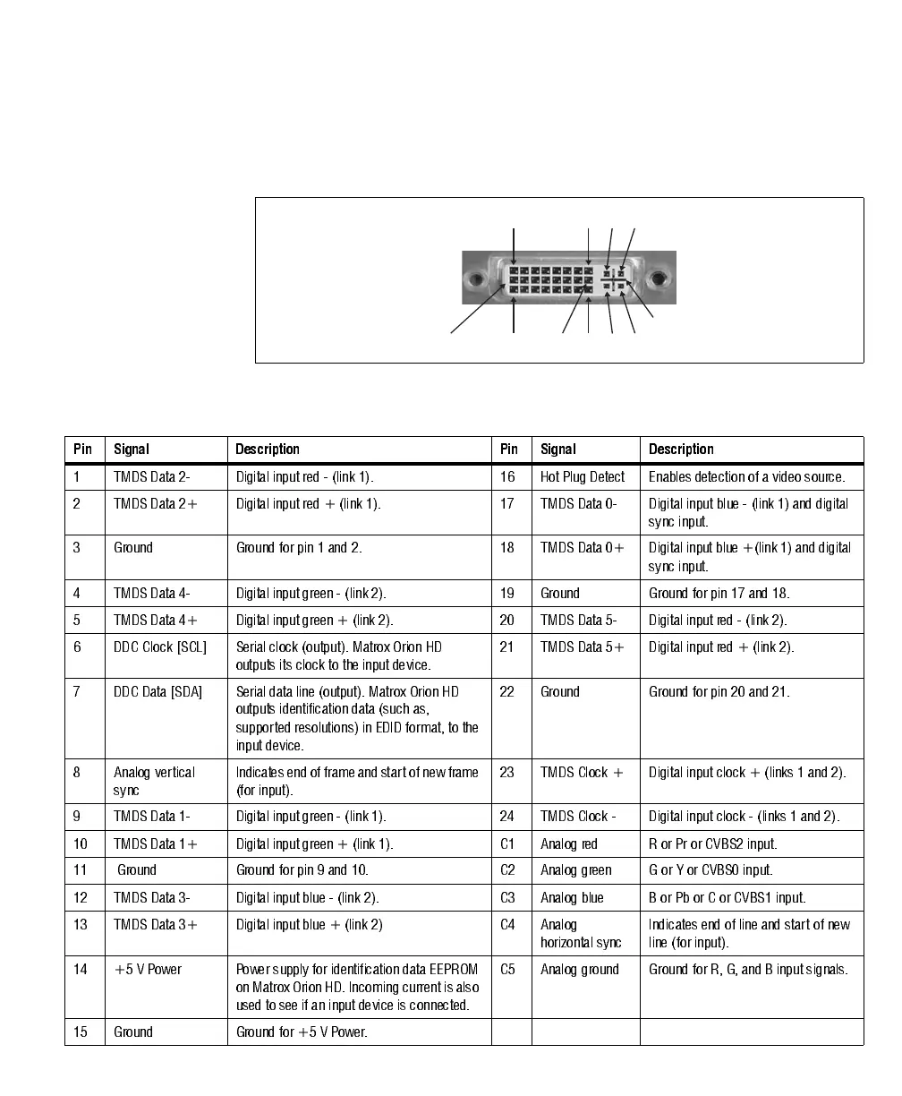7 DDC Data [SDA] Serial data line (output). Matrox Orion HD