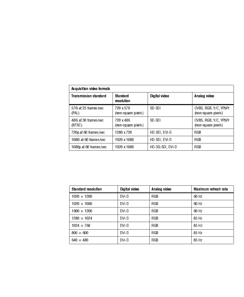 720p at 60 frames/sec 1280 x 720 HD-SDI, DVI-D RGB