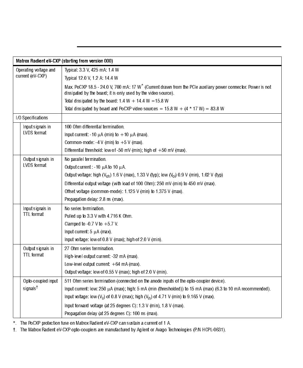 †. The Matrox Radient eV-CX P opto-couplers are manufactured by Agilent or Avago Technologies (P/N HCPL-063 1 ).