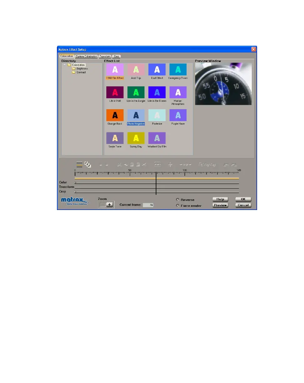 When you apply a Matrox colorization effect, the Colorization page appears:
