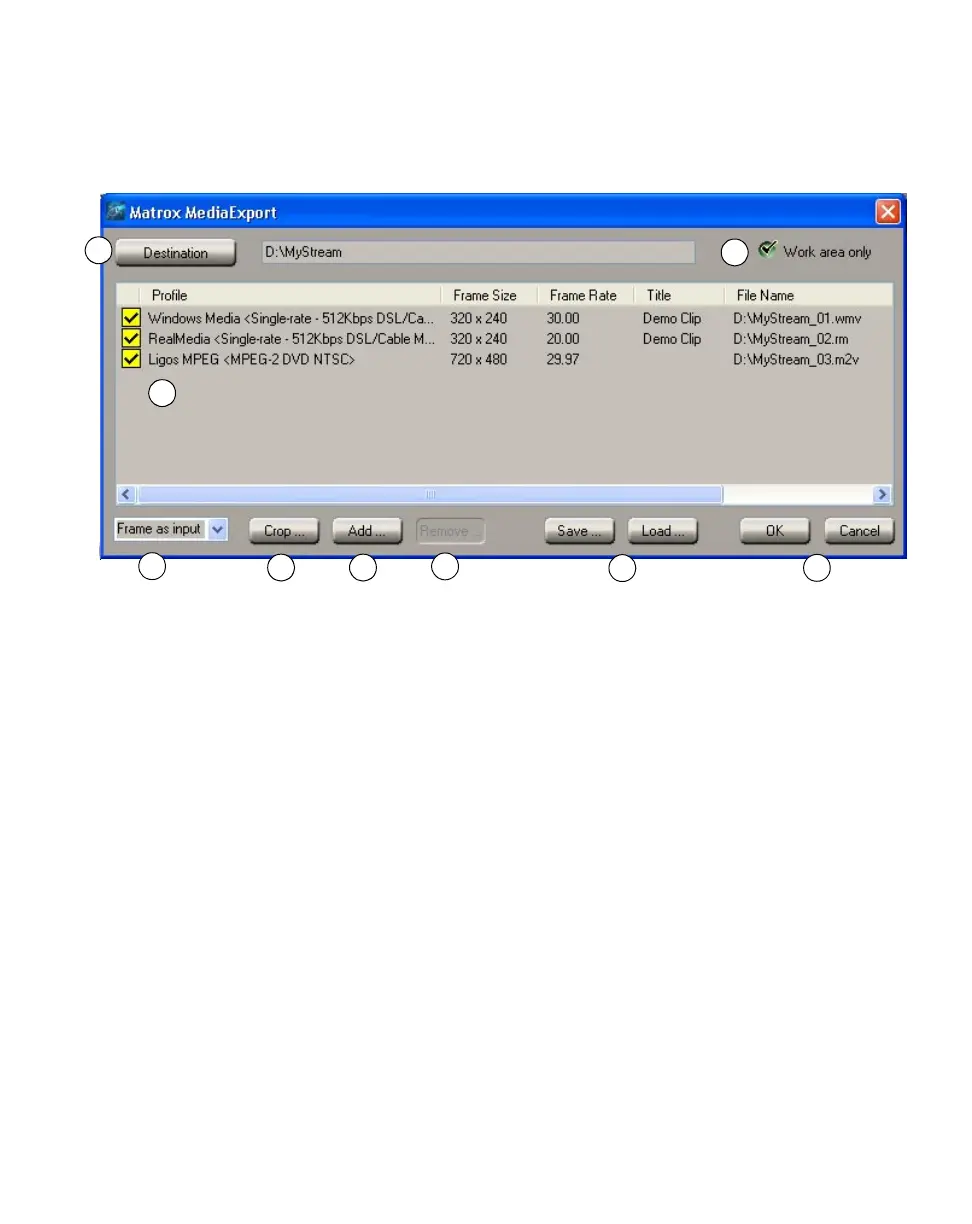 Overview of the Matrox MediaExport dialog box