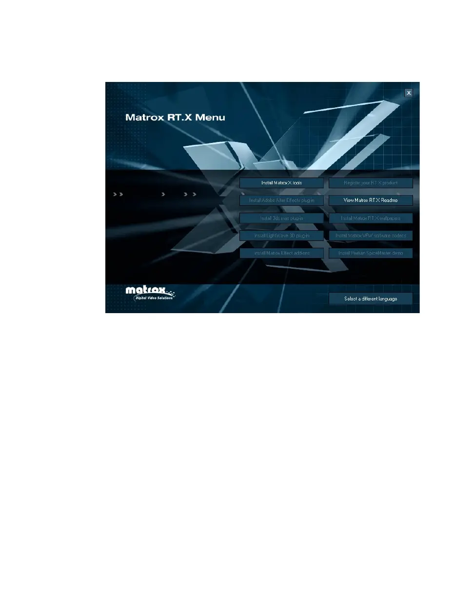 the add-ons from the Matrox RT.X menu at a later time (see “4. Install