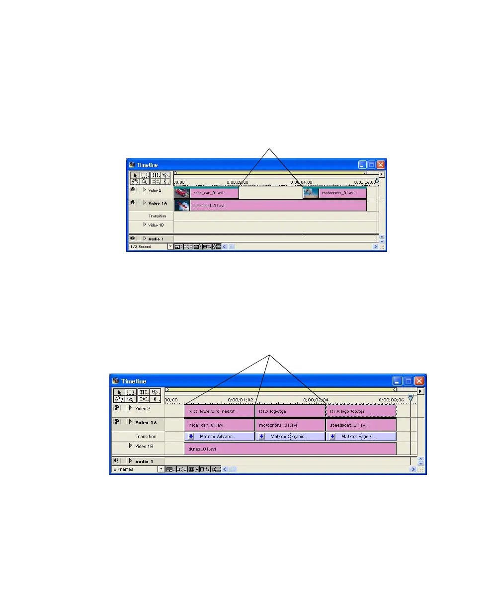 • Arrange all other Matrox effects, cuts, and single-frame graphics on your