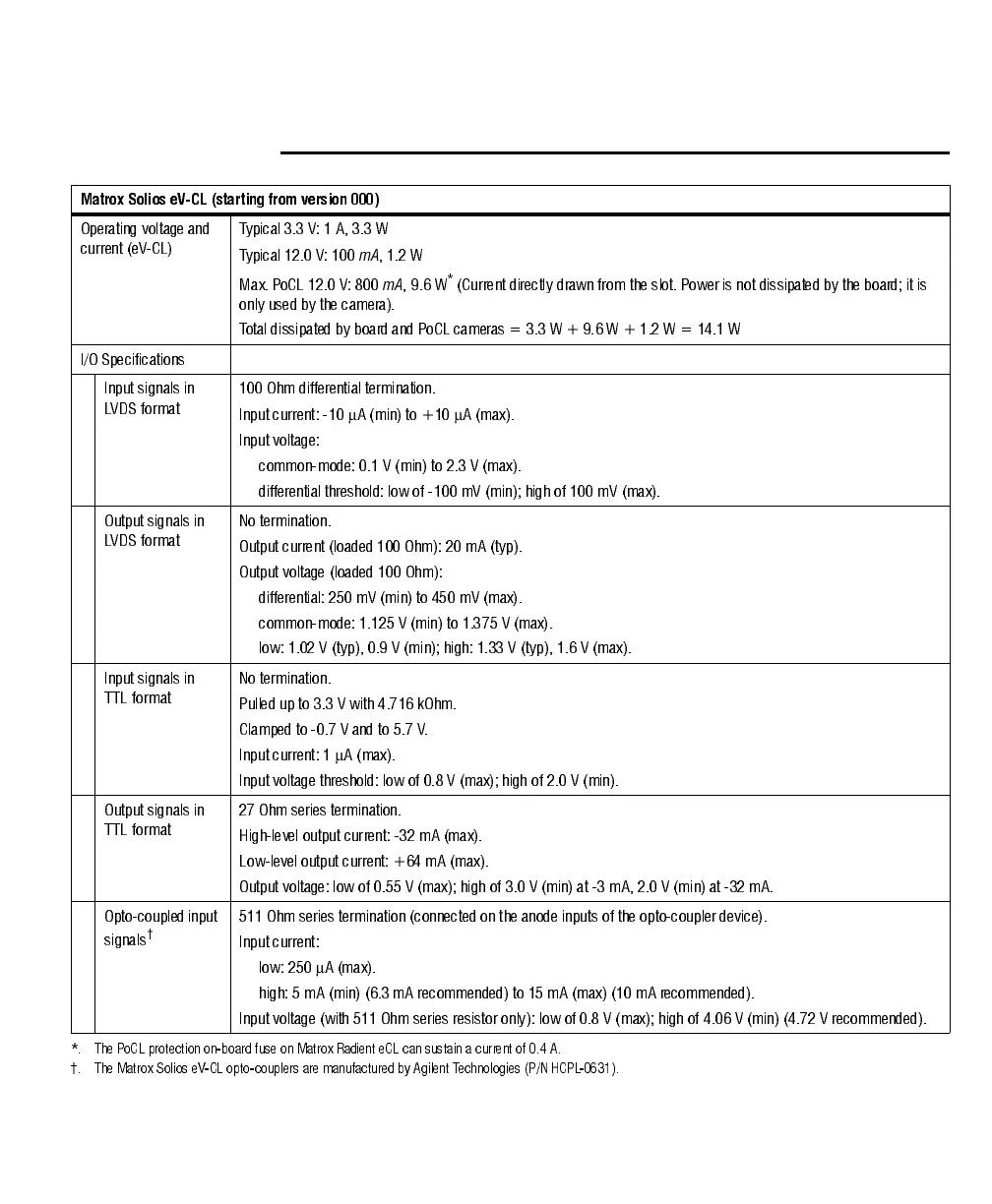 †. The Matrox Solios eV-CL opto-couplers are manufactured by Agilent Technologies (P/N HCPL-0631).