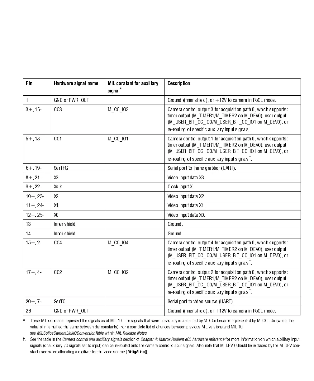 signals (or auxiliary I/O signals set to input) can be re-routed onto the camera control output signals. Also note that M_DEV0 should be replaced by the M _DEV con-