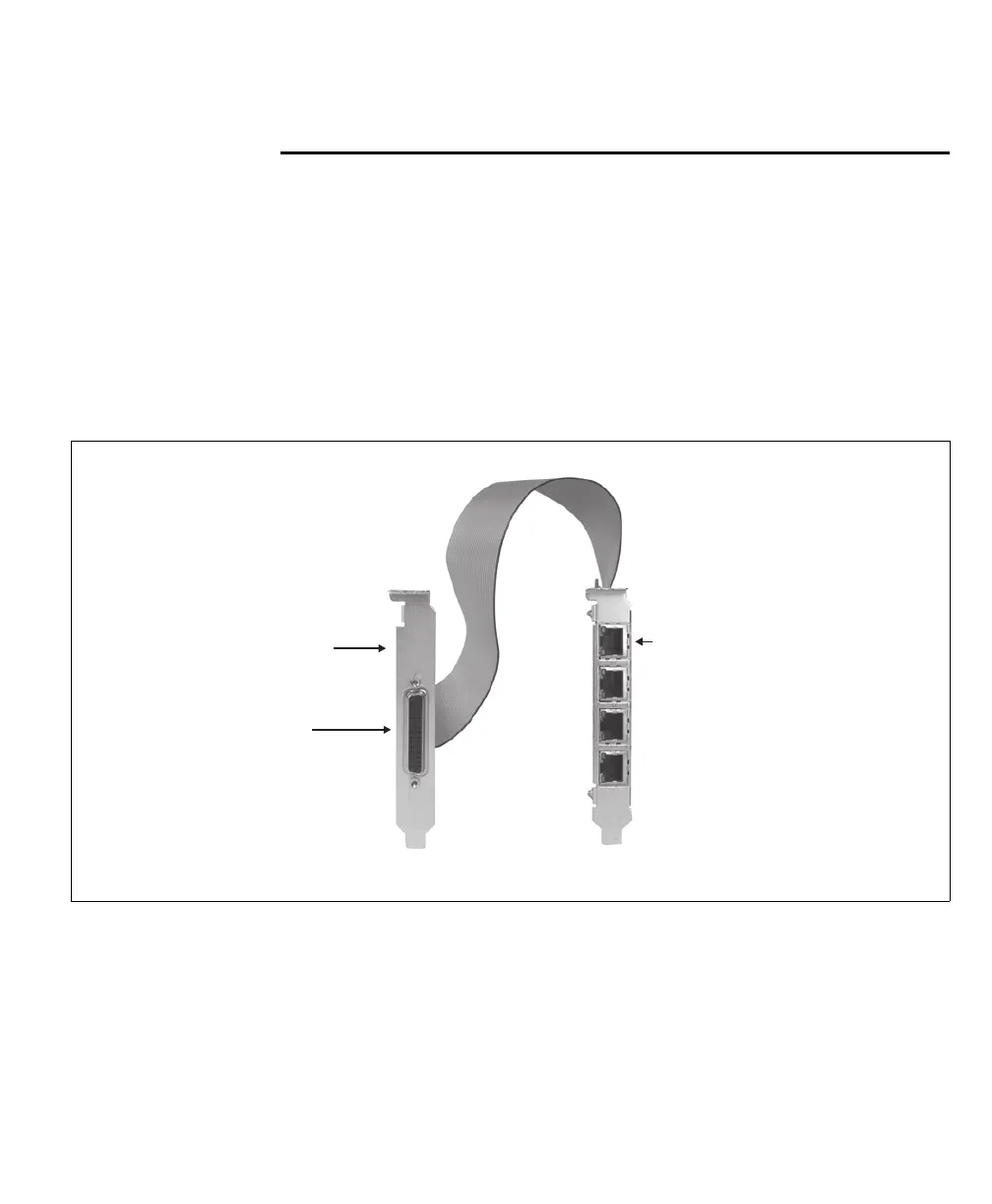 bracket, there are four Ethernet connectors. On the top edge of the board, there
