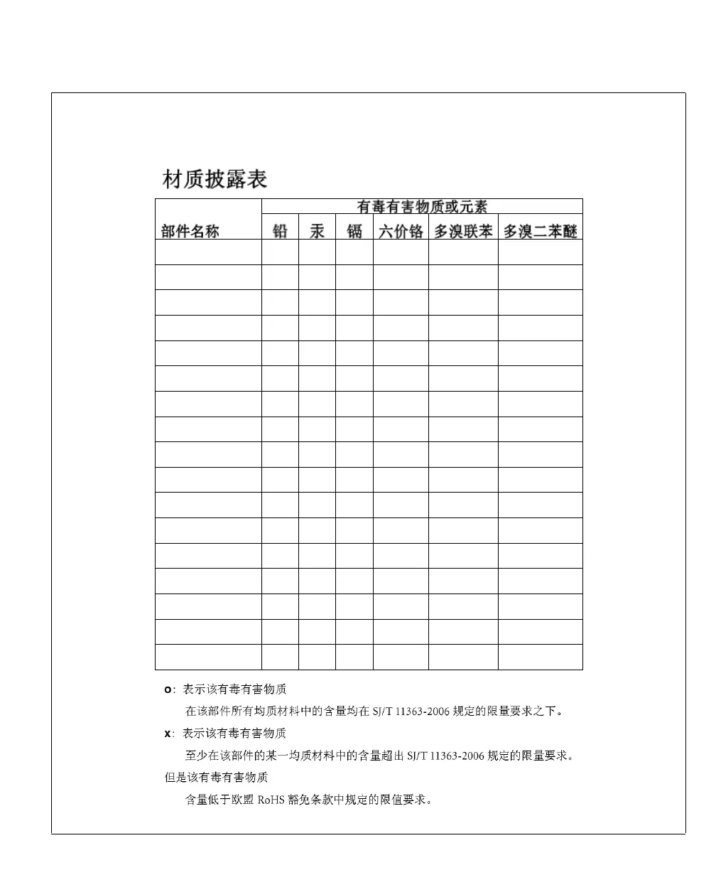Material disclosure table for SOL6M1A*