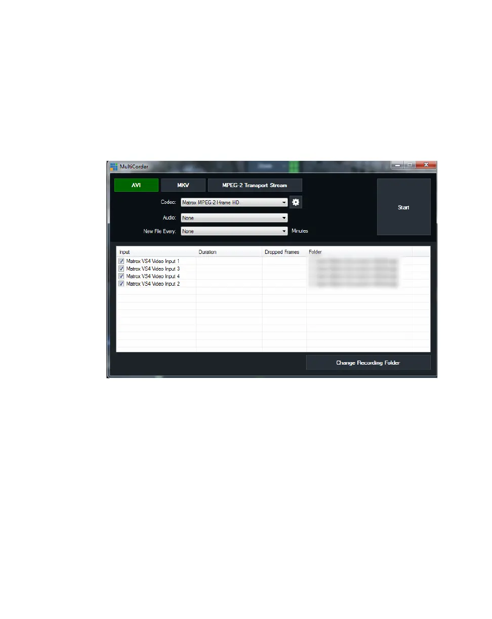 You can record up to four VS4 video input sources to Matrox MPEG-2 I-frame
