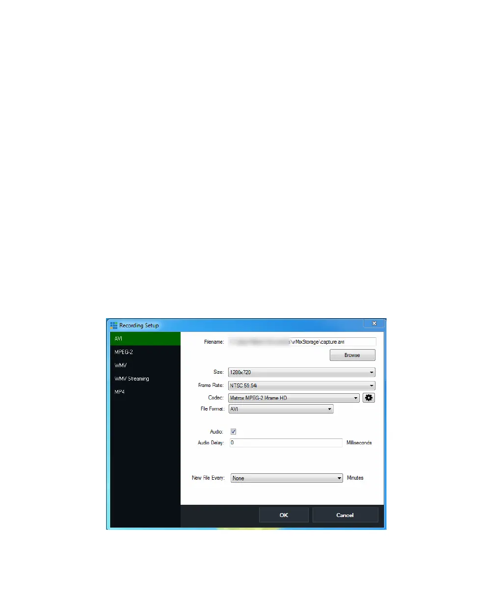 to record video, you can specify various settings for the MPEG-2 I-frame