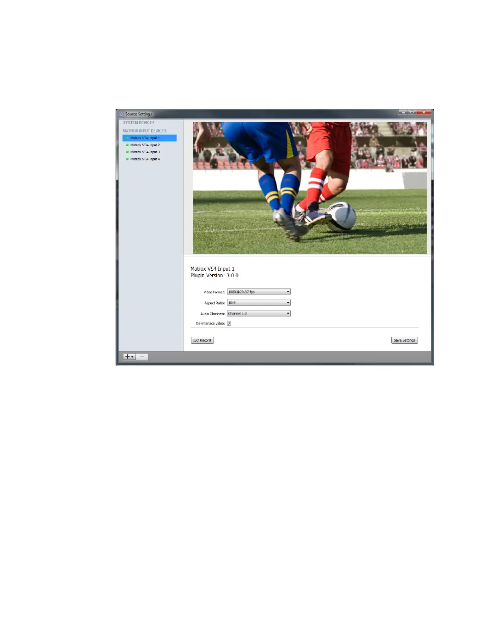 5 In the Source Settings dialog box, under MATROX INPUT DEVICES,