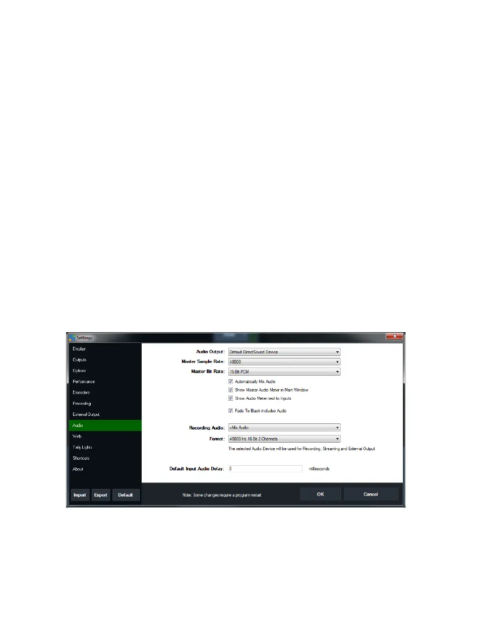 audio source connected to the VS4 inputs as your A/V sources for use with vMix,