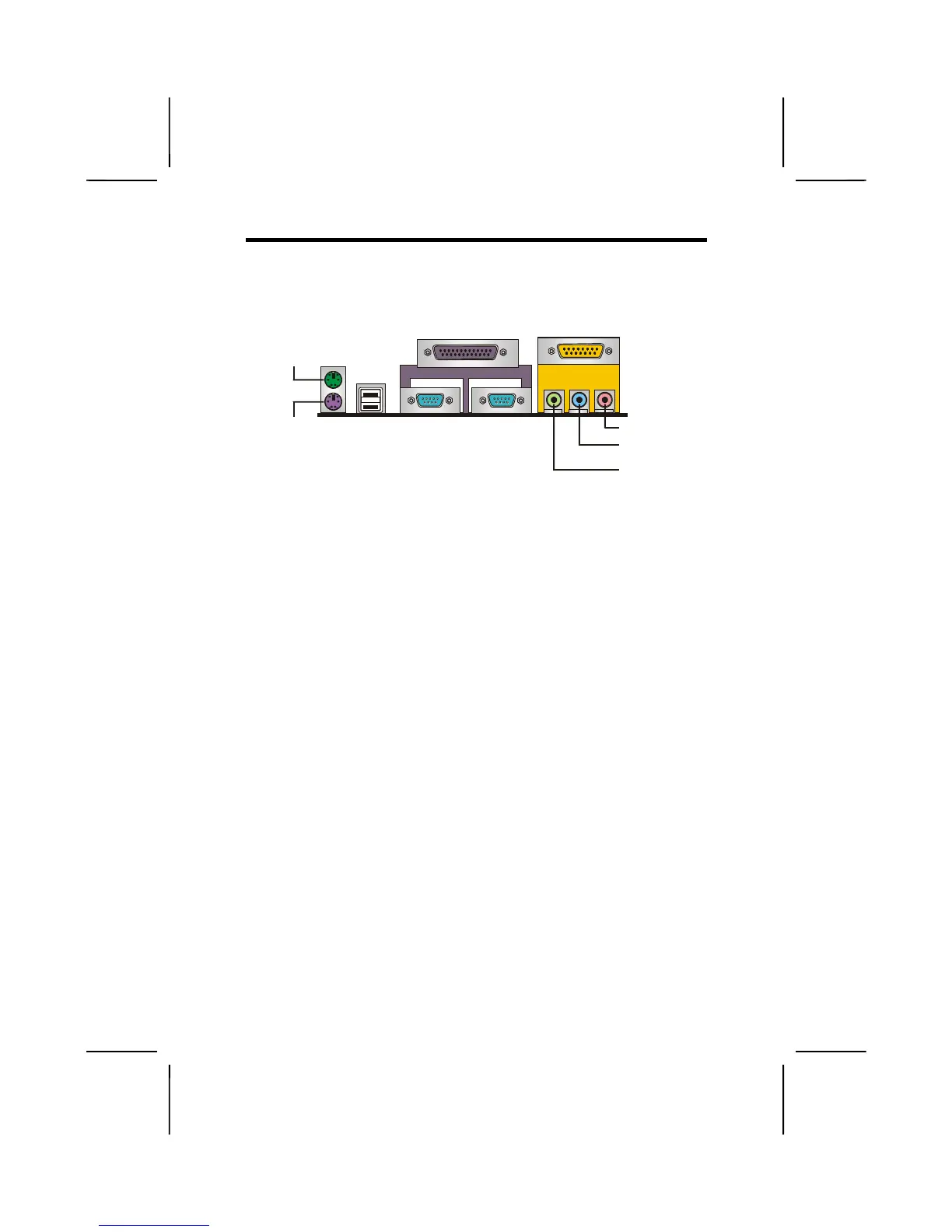 The backplane of the mainboard has the following I/O ports: