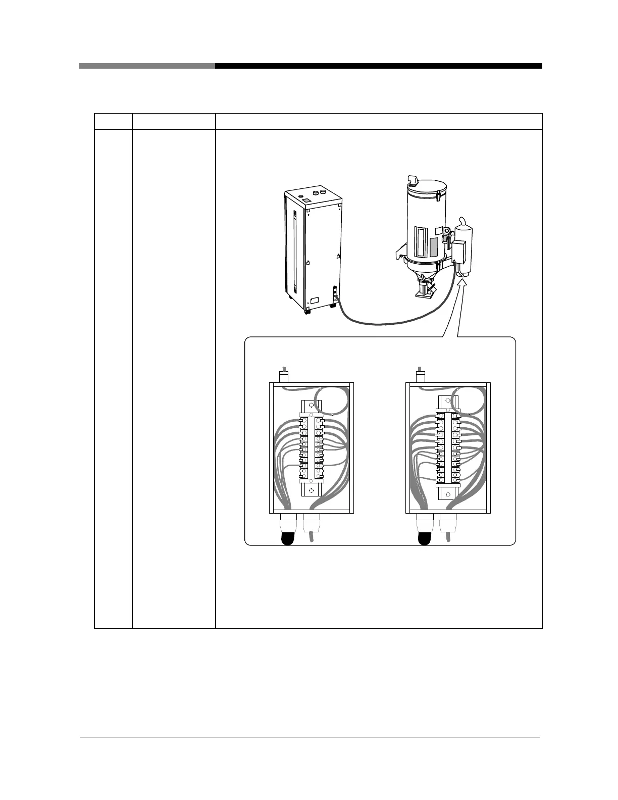 Connect relay cord of dehumidifying unit to relay box of drying hopper