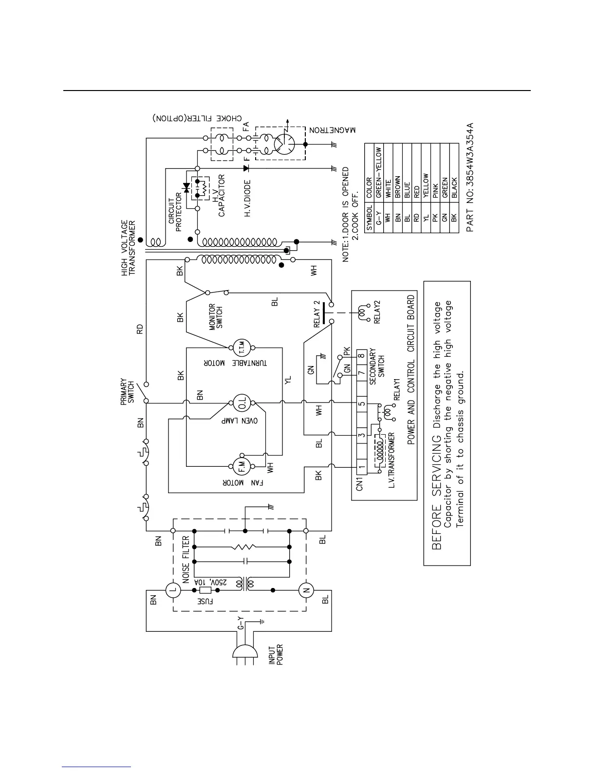 Matsui M130TCS - SCHEMATIC DIAGRAM; POWER AND CONTROL CIRCUIT BOARD