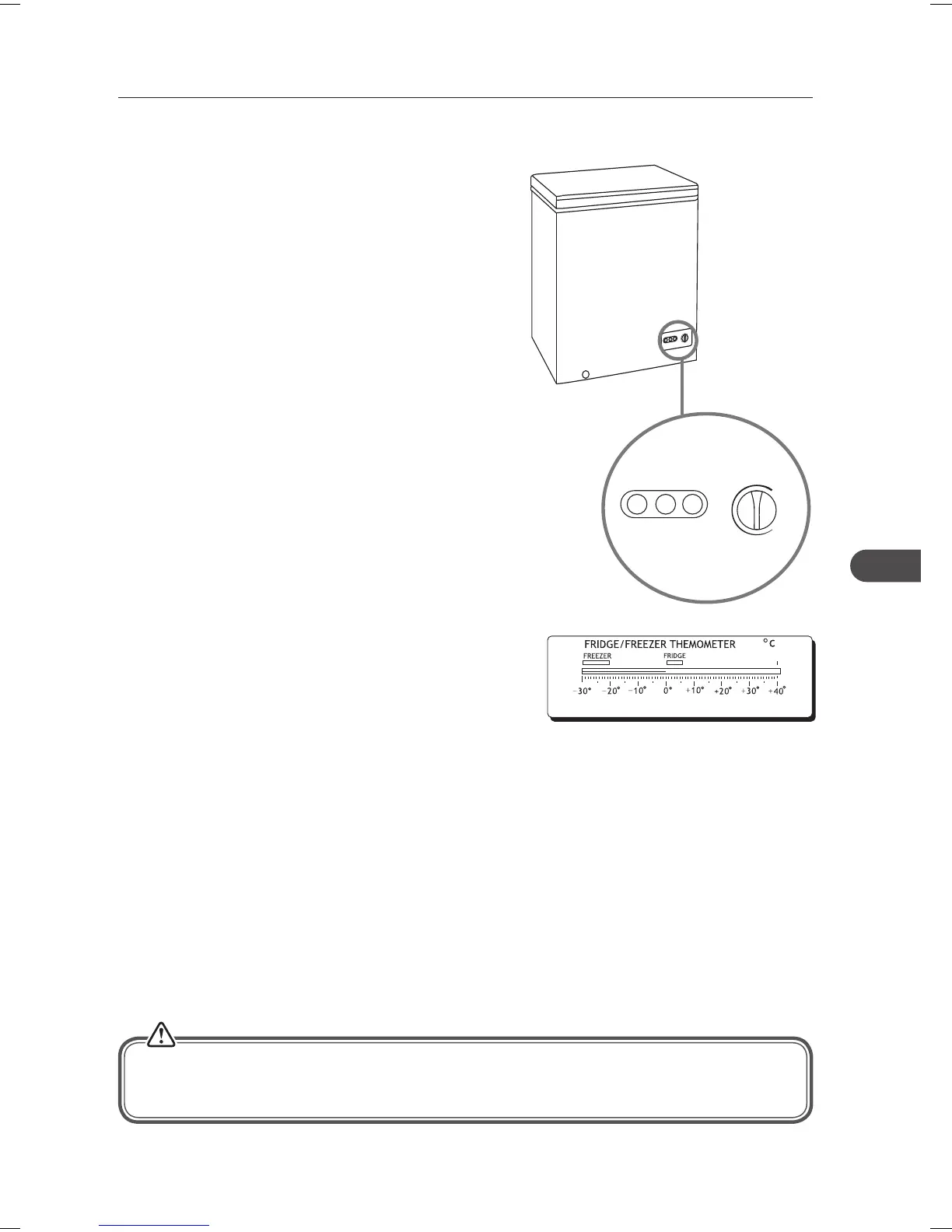 Temperaturen indeni enheden styres af et termostat. Den anbefalede indstilling er mellem 2 og