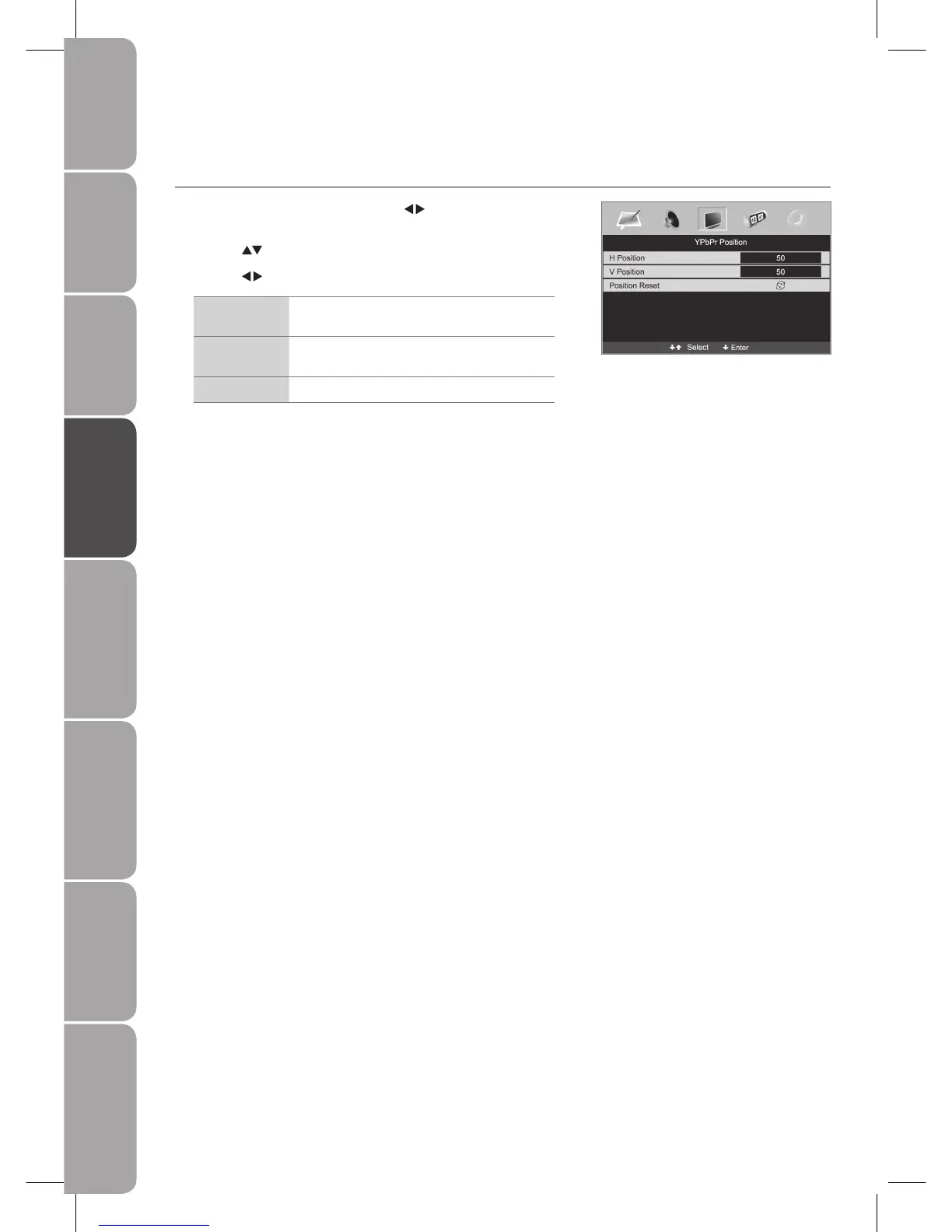 buttons to highlight an individual YPbPr Position option.