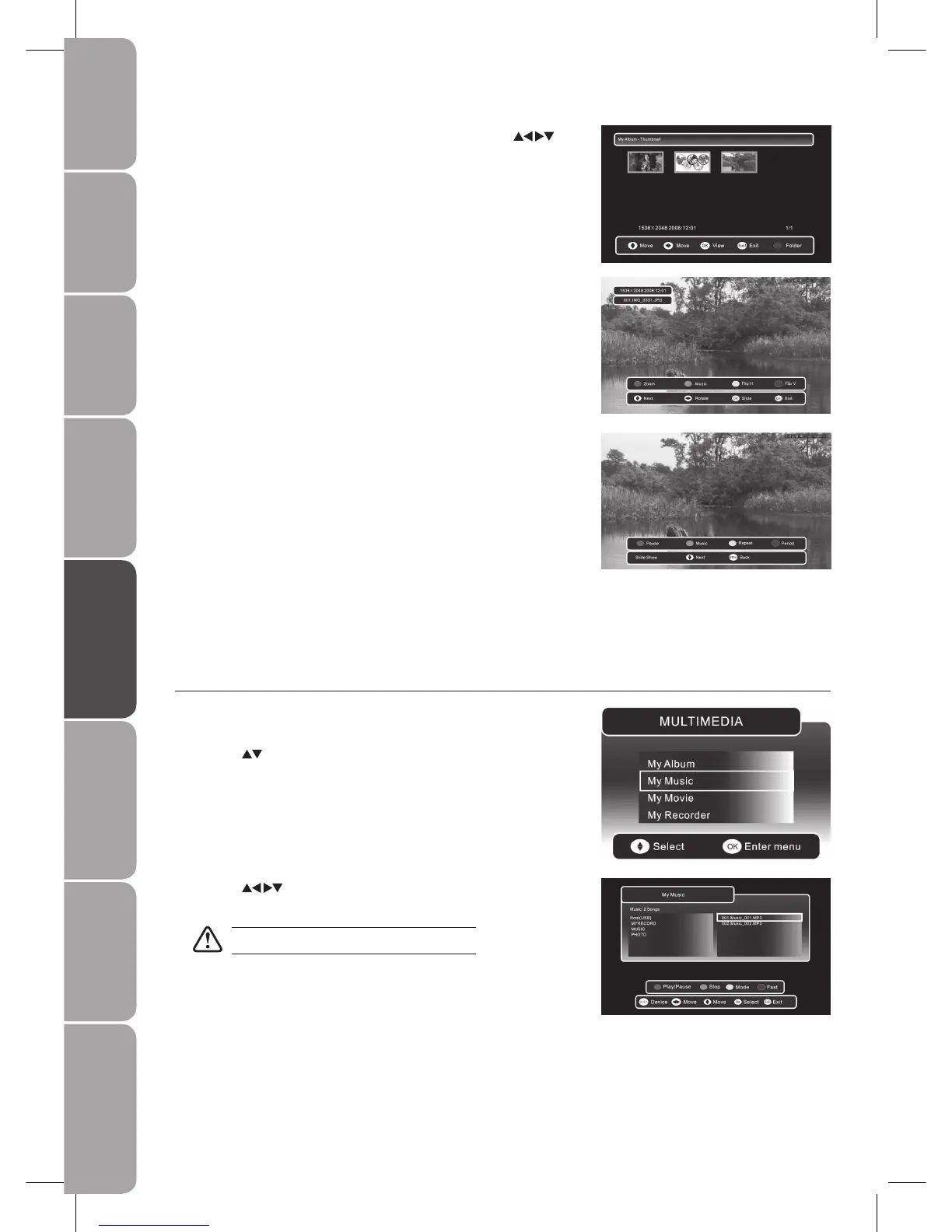During slideshow, press the GREEN button to display the music folder, so
